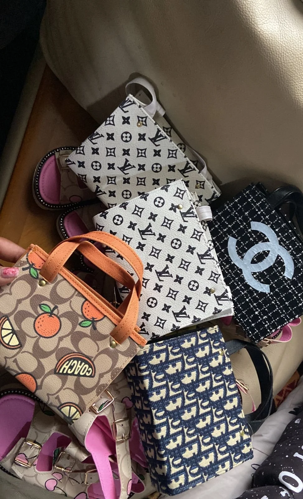 Shop Everything › Purse Image 1 of 1 Purse $25.00 Color: Chanel White and black lv Dior Orange coach Add To Cart Added!
