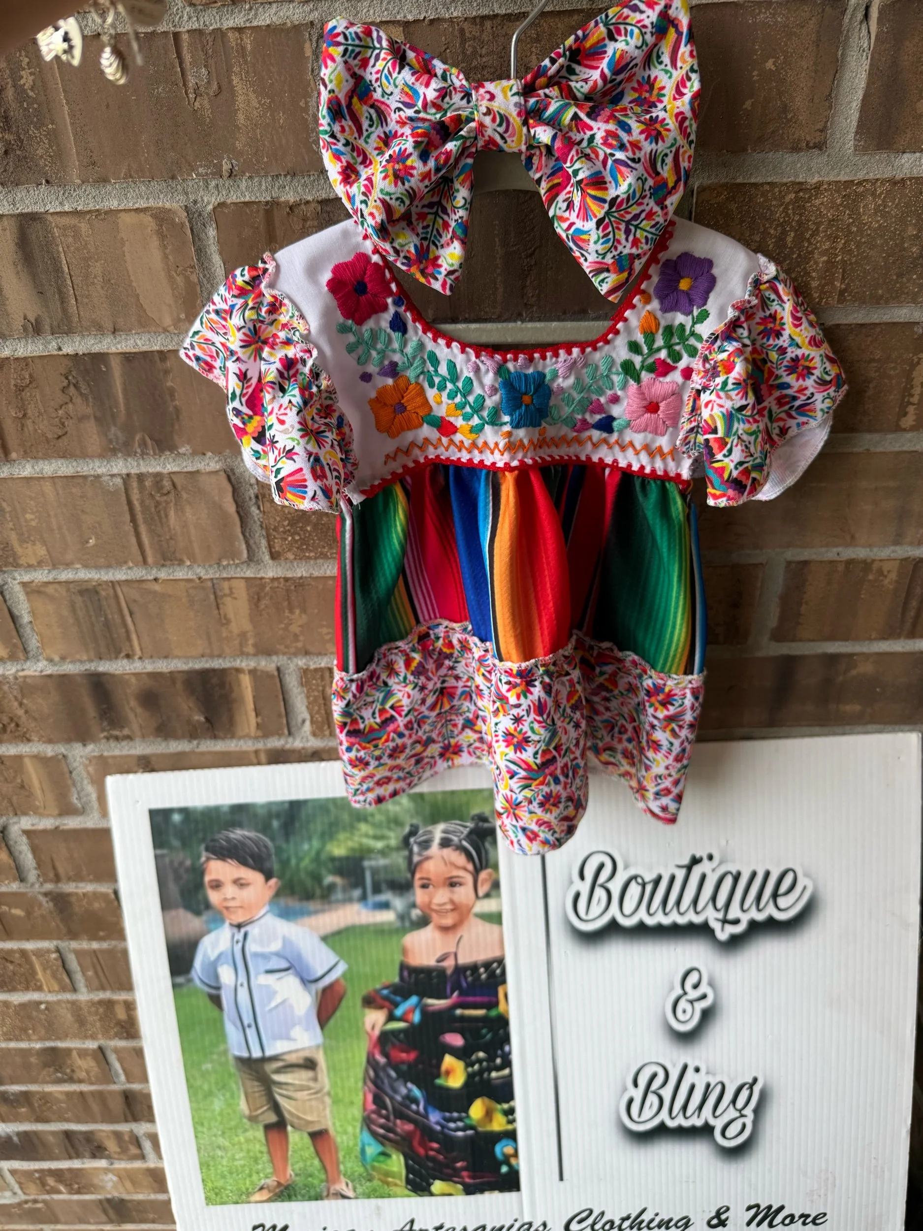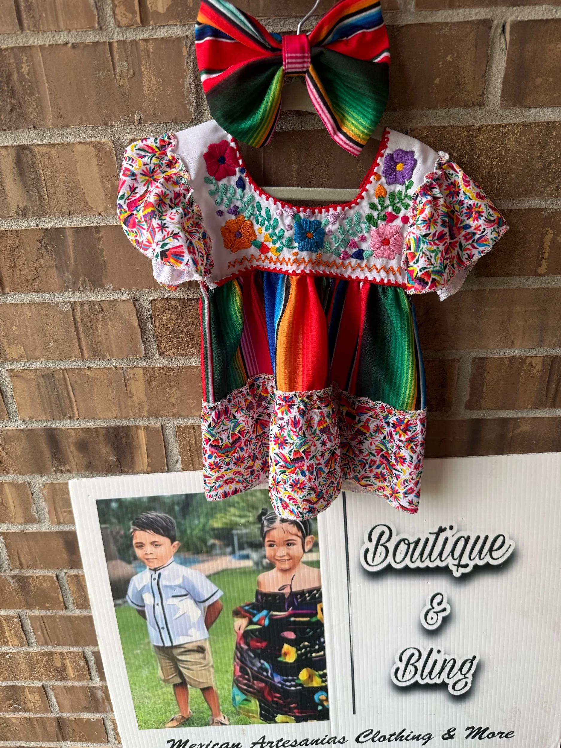 Shop Everything › Fiesta Dress WITH bow Image 1 of 2 Image 2 of 2 Fiesta Dress WITH bow $40.00 Serape or floral bow! Please leave in the comments which one!COLORS WILL VARY for flowers & embroidery! Size: 12M 24M/ 2T 4T 6 8 10 12 Add To Cart Added! Serape or floral bow! Please leave in the comments which one!COLORS WILL VARY for flowers & embroidery!